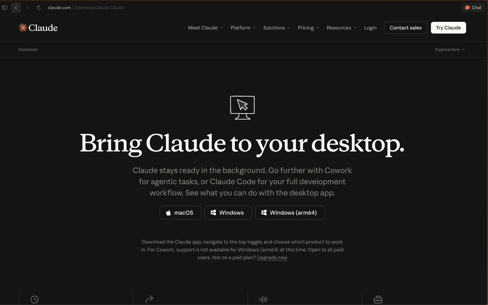 - Go to claude.com/download. Download the desktop app.