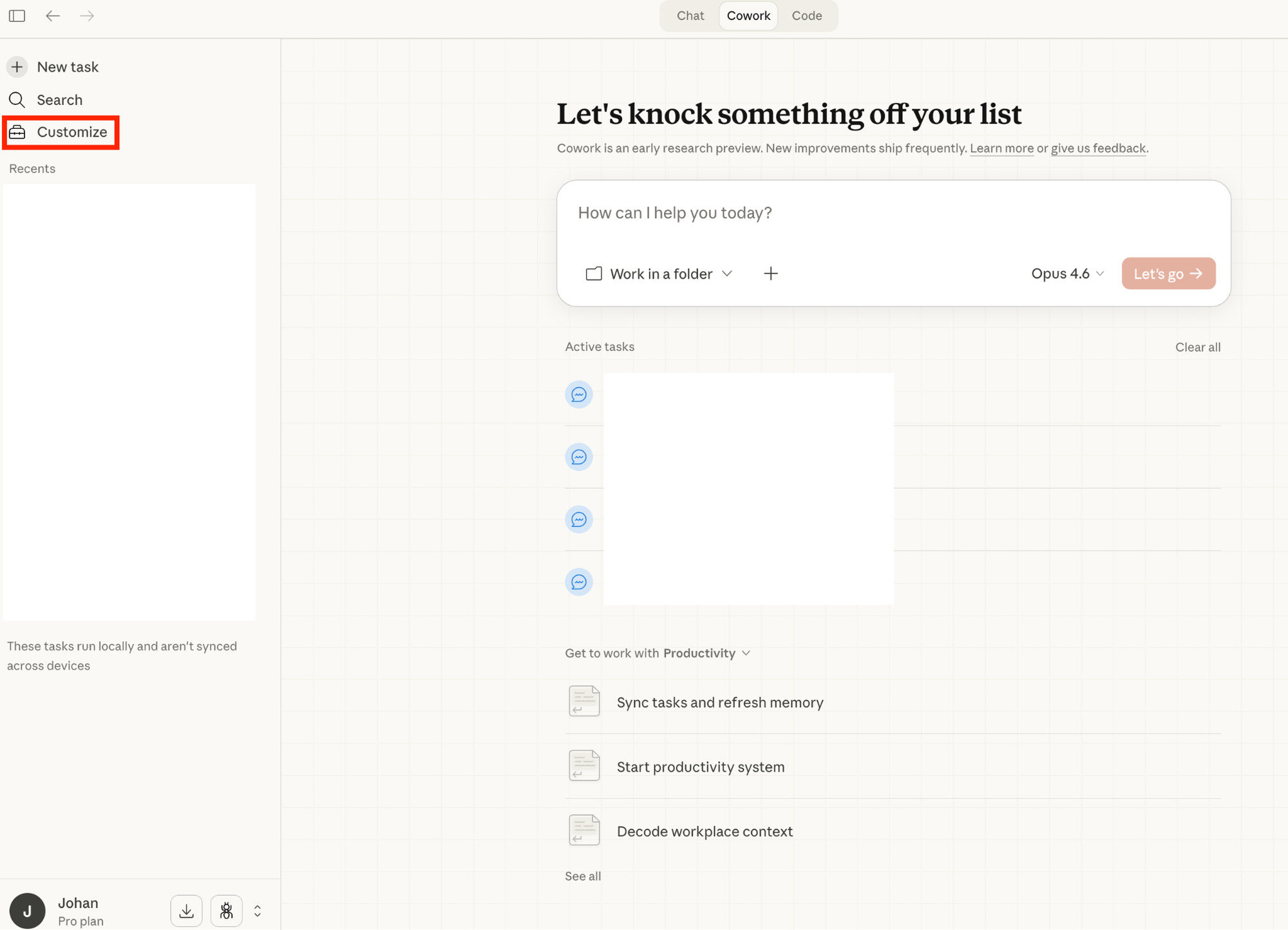 Cross-device tip: Cowork doesn't sync between machines. Put your workspace in iCloud, Dropbox, or OneDrive so at least your files stay consistent across devices.