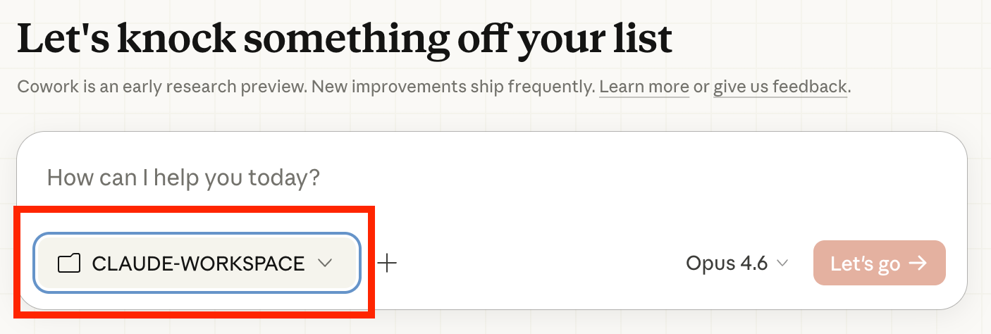 Why a dedicated folder? Cowork has real read/write/delete access to whatever you share. A dedicated workspace limits the blast radius if something goes sideways.